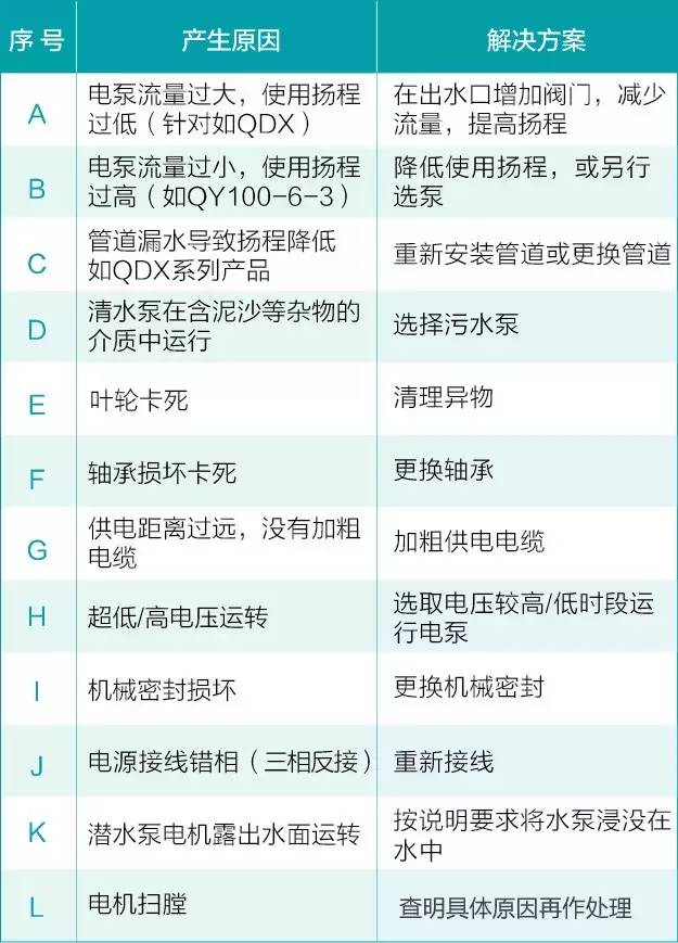 這些是造成水泵“病癥”的常見(jiàn)原因,并不是所有原因,實(shí)踐中處理故障,還因根據(jù)具體問(wèn)題,實(shí)際分析,應(yīng)遵從先外后里的原則,切勿盲目操作。