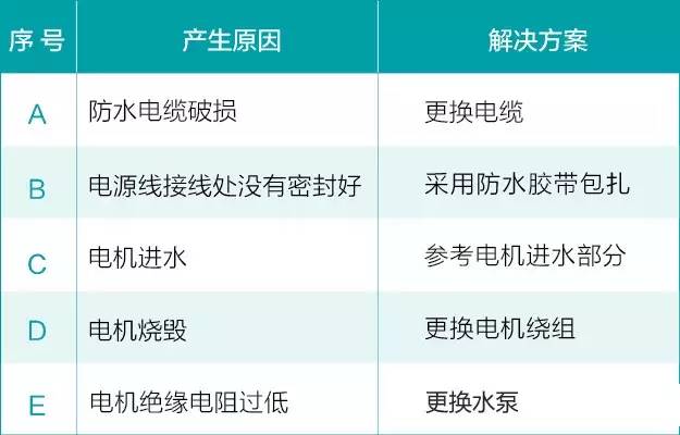 2、水泵電機(jī)電源線接線沒(méi)有密封好進(jìn)水;